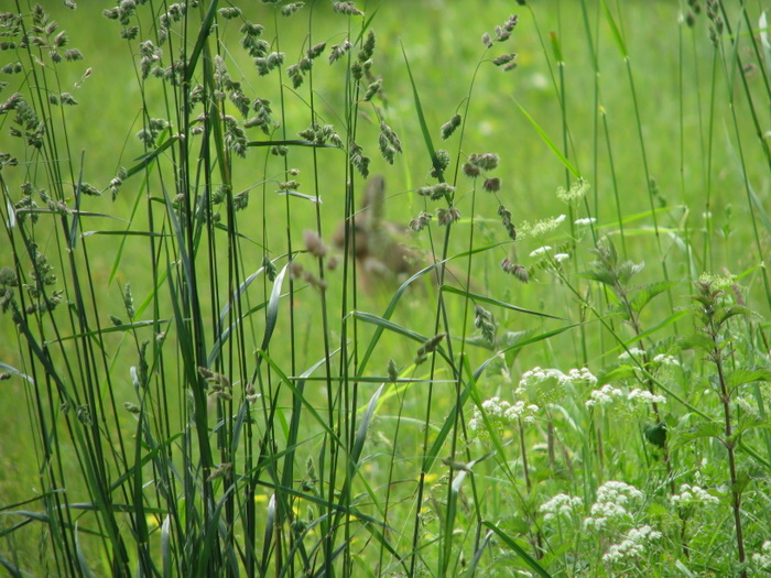 Ich war mitten drin im Naturschutzgebiet, als ich etwas im hohen Gras sitzen sah. Es lag noch in ziemlicher Entfernung, so versuchte ich, es heran zu zoomen, was mir nur sehr schlecht gelang. Aber trotzdem zeige ich hier das Foto: Die Qualität des Fotos ist nicht gut, aber ich denke, man erkennt ihn. Im nächsten Bild sieht man, wie er in Lauerstellung geht.