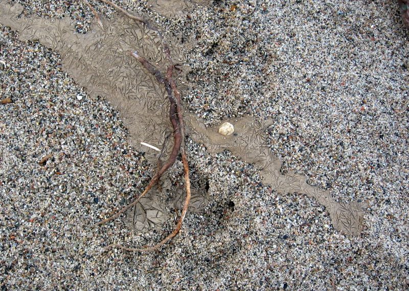 Schlammspuren im Sand