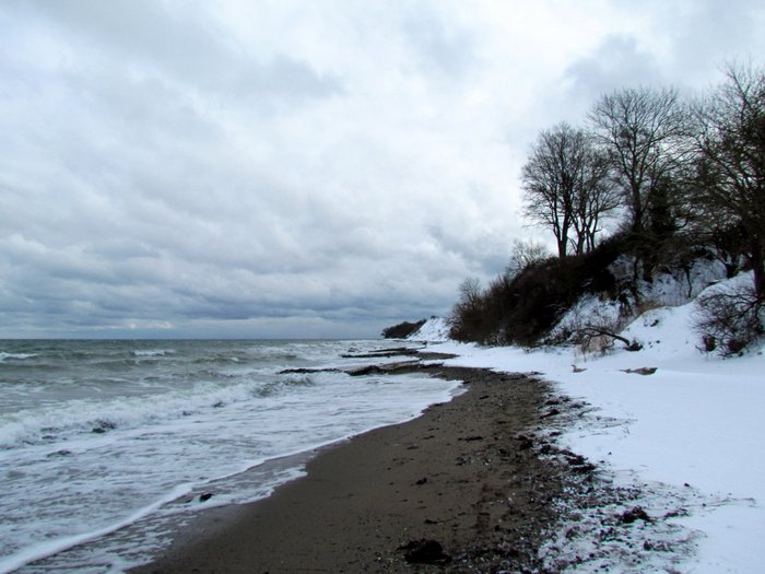 | Der Nordoststurm trieb das Wasser bis an die Steilwand.