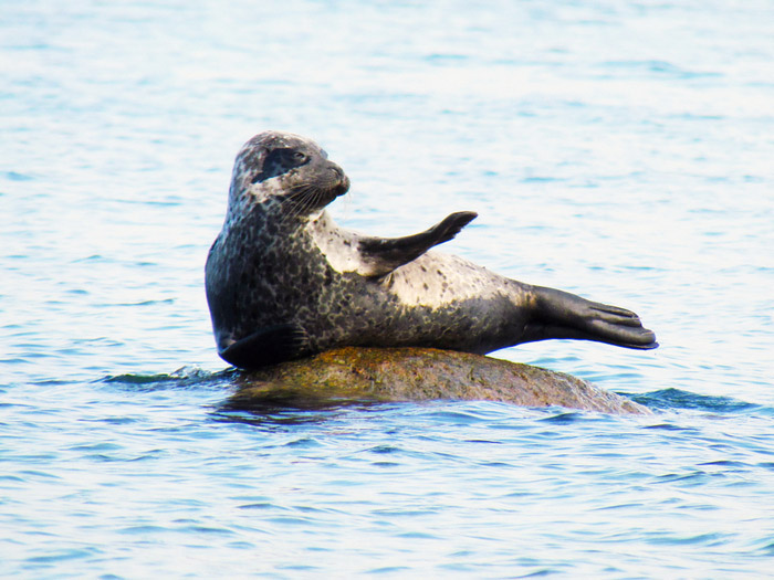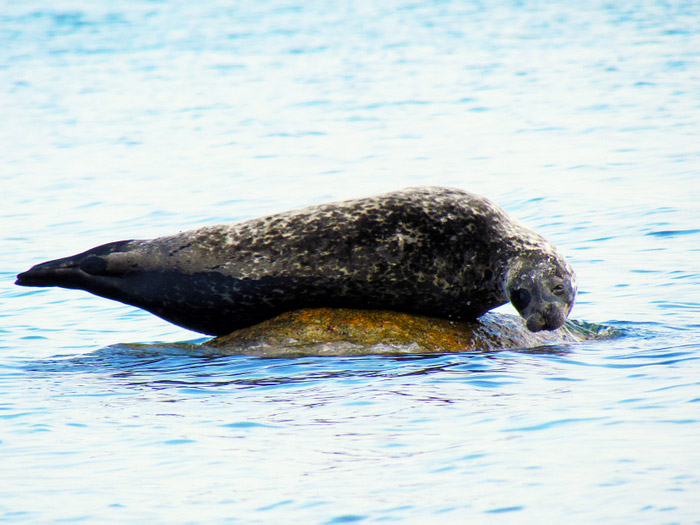 Auf dem Meer auf einem Stein liegen entdeckte ich eine Kegelrobbe. Diese ist eher selten in der Lübecker Bucht anzutreffen. Ich setzte mich auf einen Stein am Strand und beobachtete sie eine Weile.