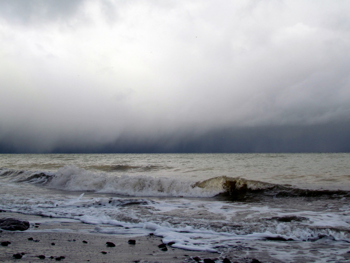| Dunkle Nebelschwaden zogen im Hintergrund vom Meer auf. |
