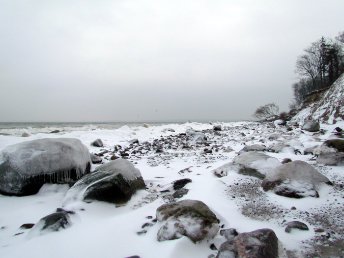 | Überall am Strand lagen vereiste Steine, die das Gehen beschwerlich machten, aber mir gefiel es. |