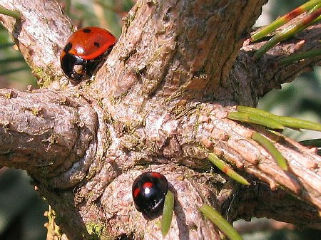 Seine Heimat war eine kleine Tanne und der Weg war sehr beschwerlich, man könnte auch sagen, oft sehr stachelig. Aber das störte den kleinen Marienkäfer nicht, er wollte die Welt erobern. | ||||||||||||||||||||||||||||||||||||||||