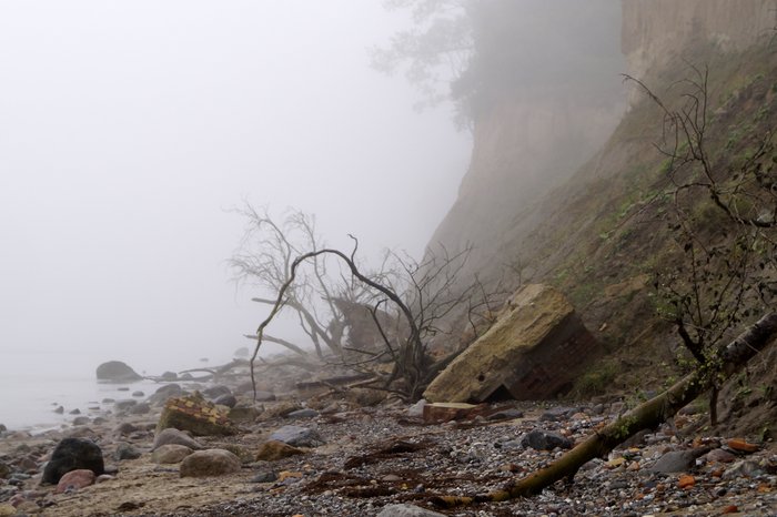 Er verschluckte die letzten Geräusche hier am Strand. Mir begegnete kein einziger Mensch. Ein leises Knacken erschreckte mich, als ich auf einen trockenen Ast trat. An dieser Stelle des Weges war ich immer besonders vorsichtig, weil hier immer noch Mauerstücke von einem Gebäude herunterkommen.