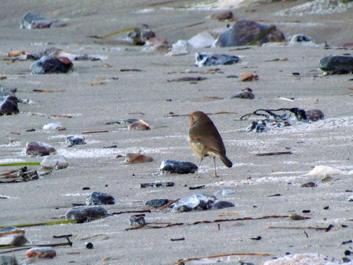 Also kehrte ich um und sah dieses Rotkelchen am Strand sitzen.