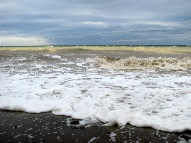 Der Himmel hatte sich langsam zugezogen mit einem dunklen Blau und die Wellen zeigten sich mir dunkelbraun, viel Sand trugen sie mit.