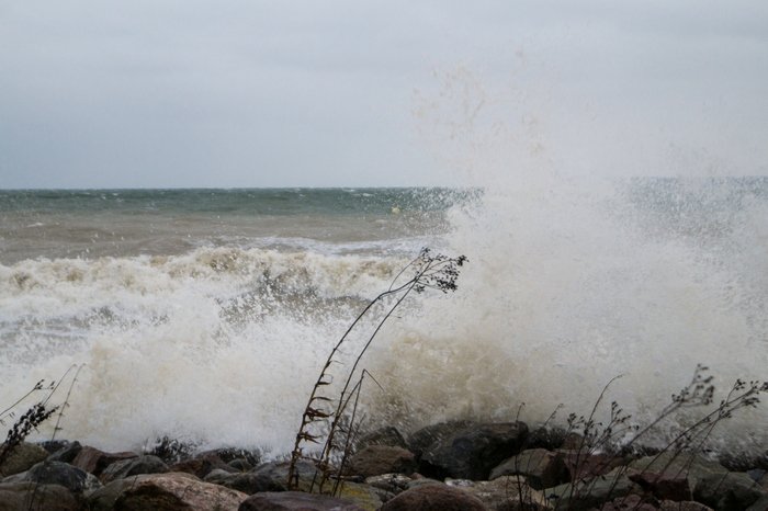 Immer wieder schlugen die Wellen kräftig an die Steine.