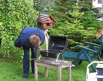 Durch den Regen war eh die Temperatur sehr gesunken und da ich offene Schuhe trug, hatte ich im Gras schnell nasse Füsse.Eule beobachtete mich und sprang plötzlich auf, holte den noch warmen Grill und schob diesen unter meinen Stuhl! Es war eine Superidee! Schon bald spürte ich auch die Wärme auf der Sitzfläche. Trotz des Regens und der Kälte ist es ein fröhliches Treffen geworden. ![]() |