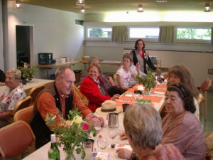 Nun endlich sollte ich alle meine Freunde aus der Schweiz wieder sehen. Das Chattertreffen war der eigentliche Grund meines Besuches. Der Sonntag begann mit einem strahlenden Sonnentag, kaum erhofft nach dem vielen Regen! Den Treffpunkt fanden wir auch gut, dank dem Eintrag aus dem letzten Jahr auf der Stadtkarte. Und oh Wunder, auch einen Parkplatz entdeckten wir vor dem Haus, den letzten! Wir hatten die Eingangstür kaum geschlossen, da kamen schon die ersten Chatter auf uns zu. Ach, wie habe ich mich gefreut, wieder die bekannten Gesichter zu sehen! Und dann füllte sich der Saal, ein Begrüssungsgemurmel und Lachen erfüllte den Raum. Ab und zu ein Jauchzer. Es war einfach schön. ![]() Ein Familientreffen war es für mich, all die lieben Chatter wieder zu sehen, machte mein Herz ganz weit. Sogar die Personen, die ich noch nie gesehen habe, waren mir auf eigenartige Art vertraut. Ich denke, man spürt sich schon im Chat während der "Gespräche". Pastis wurde ausgeschenkt, mir war es nicht ganz geheuer, als ich die Mischung sah, die Chouchou mixte und hielt mich lieber am Wein. Ein fröhliches Geplauder ringsherum, egal, auf welche Gruppe ich stiess, sofort wurde ich mit einer Herzlichkeit aufgenommen, der ich mich kaum entziehen konnte. Wollte ich auch nicht. : Ich habe diese Atmosphäre genossen. ![]() Und wenn ich in die fröhlichen, gelösten Gesichter auf den Fotos blicke, dann weiss ich, es hat allen gefallen. Das Beköstigung war gut , für kurze Zeit war es richtig ruhig im Raum, jeder genoss sein Essen. Addu erfreute uns mit dem Gedicht von " Nis Randers" und als "Bonbon"auch noch ein plattdeutsches Gedicht, aber ich vermute, die meisten haben es nicht verstanden. Ich habe mich gefreut, dass er es brachte. Den Nachmittag verbrachten wir vorwiegend im Freien in der Sonne, lernten uns besser kennen, hatten Spass, aber auch das eine oder andere tiefer gehende Gespräch wurde geführt. Aber vor allem wurden Freundschaftsbande geknüpft. Einige Hunde waren auch dabei, sehr bewundert und immer wieder gestreichelt von den Chattern. Besonders Basco, der kleine Hund von Hehe_m hatte es uns angetan, der war aber auch zu lieb! Von einer Gruppe zur anderen wandernd, war ich mal wieder auf dem Weg in den Saal, da bemerkte ich Hehe_m mit Basco vor mir, in die gleiche Richtung gehend. Der Hund zeigte sich etwas widerspenstig, er schien eigene Vorstellungen von der Richtung zu haben, die sich nicht mit denen seines Herrchens deckten. Ich kniete mich nieder, fasste an die Leine zwischen den beiden und hielt sie fest. Hehe_m zog und zog, immer kräftiger. Ich sass neben Basco und lachte in mich hinein. Hehe_m zog und zog und Basco bewegte sich keinen Zentimeter. Dann kam es seinem Herrchen doch etwas spanisch vor, dass der Basco plötzlich über soviel Kraft verfügen sollte und drehte sich um und erspähte die Übertäterin. *grins* Meinem spitzbübischem Lachen konnte er sich dann nicht entziehen, er lachte herzhaft mit. Bepackt mit allerlei schönen Dingen gingen wir dann am Abend wieder schweren Herzens auseinander. Ich habe den Tag genossen! |